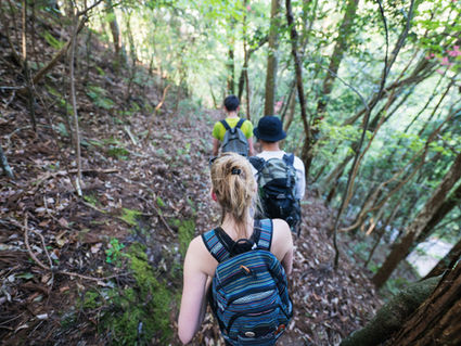 An extraordinary hiking journey set in the dense forests of the Kii Mountains overlooking the Pacific Ocean.